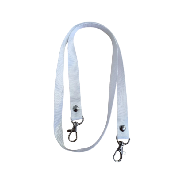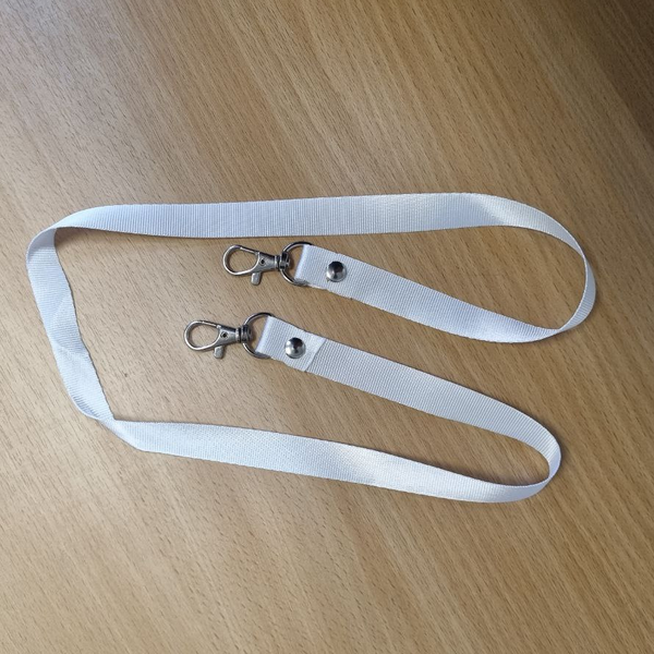Лента для бейджа Стандарт; с 2 карабинами; Белая, ширина 15 мм, длина 80 см