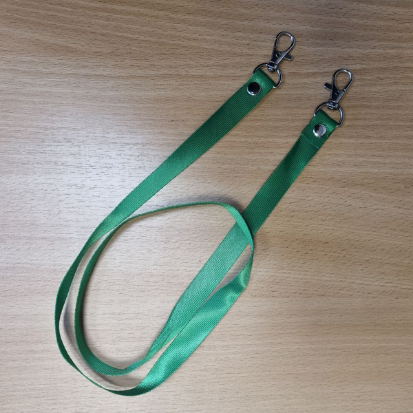 Лента для бейджа Стандарт; с 2 карабинами; Зелёная, ширина 15 мм, длина 80 см