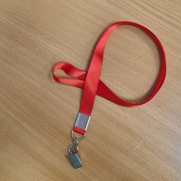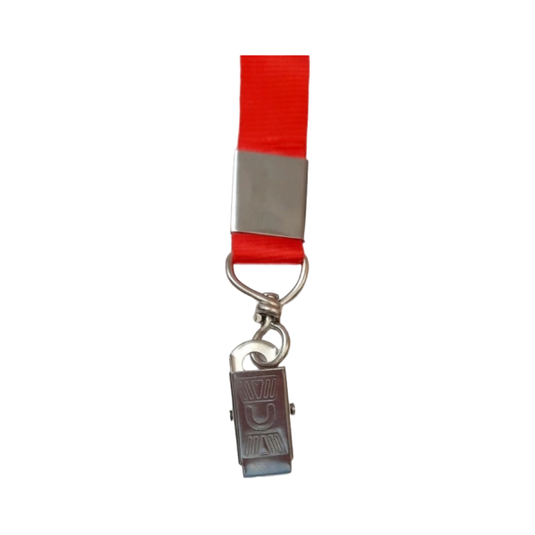 Лента для бейджа Стандарт; с клипсой поворотной; со скобой; Красная, ширина 15 мм, длина 80 см