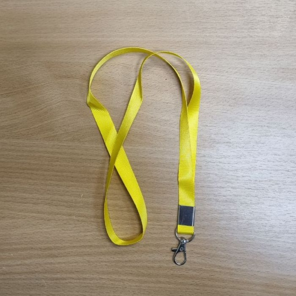 Лента для бейджа Стандарт; с карабином; со скобой; жёлтая, ширина 15 мм, длина 80 см