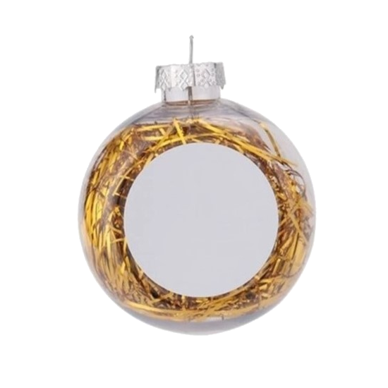 Елочная игрушка для сублимации Шар прозрачный с мишурой; со вставкой для сублимации, D 80 мм