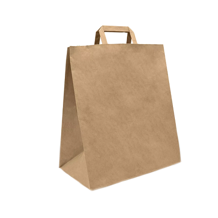 Купить Крафт-пакет с плоскими ручками, коричневый, 26х14х29 см. вы можете в компании Первая Полиграфическая Компания, оформив заказ в интернет магазине, или
